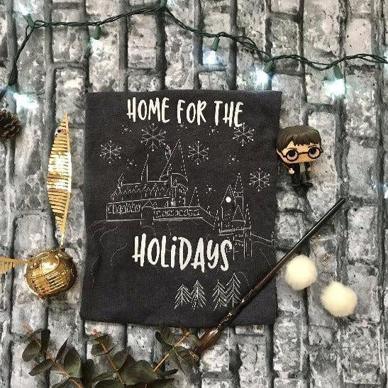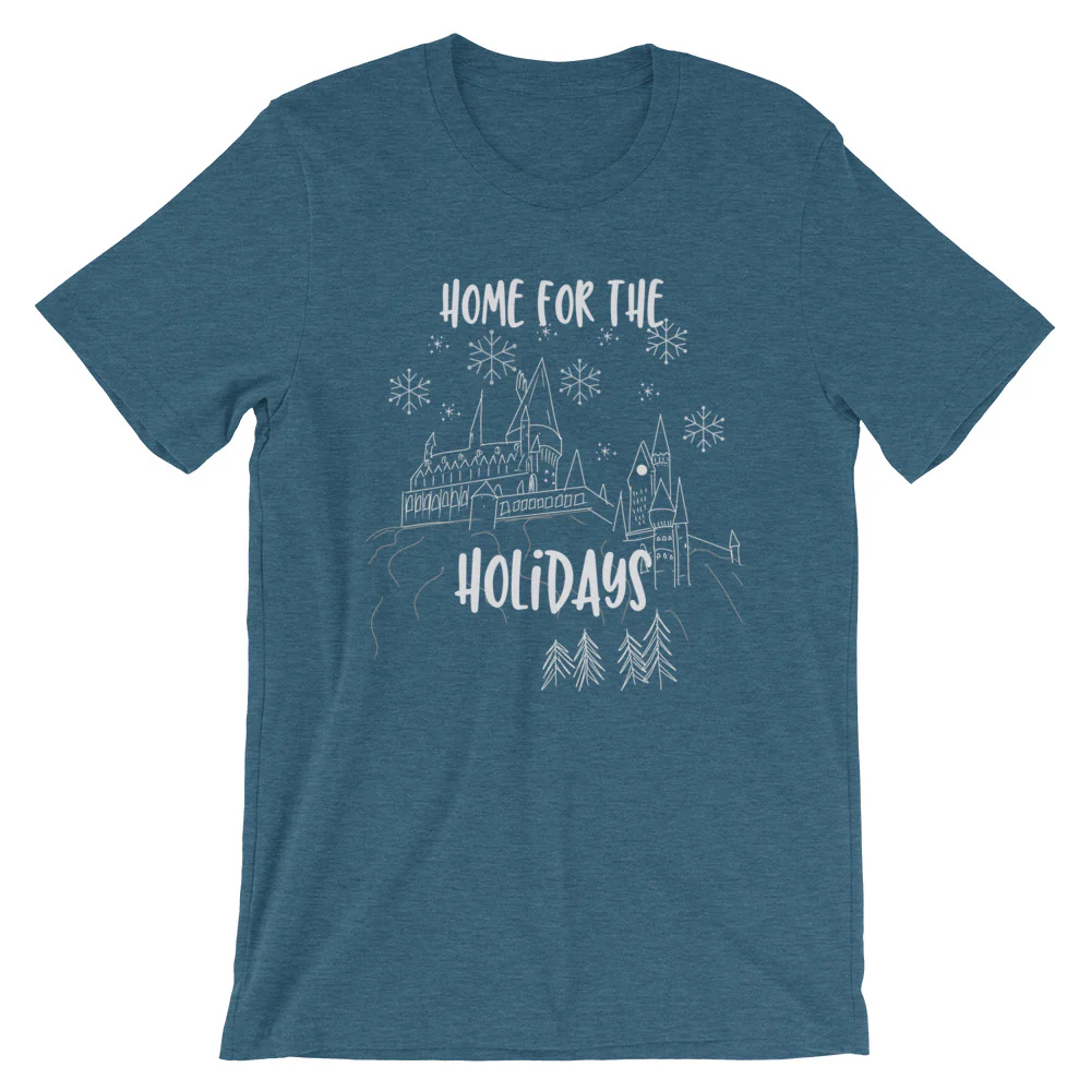 Home for the Holidays T-shirt Magical Christmas Castle Holiday Snowfall T-Shirt