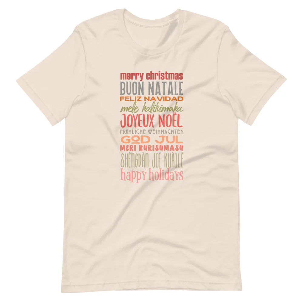 Christmas Greetings T-Shirt World Showcase Disney Shirt Many Languages EPCOT Word T-Shirt