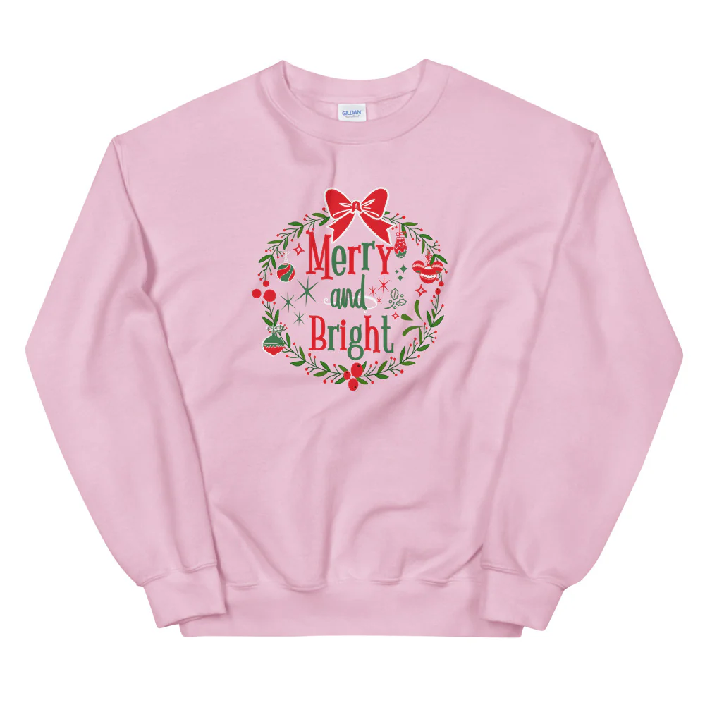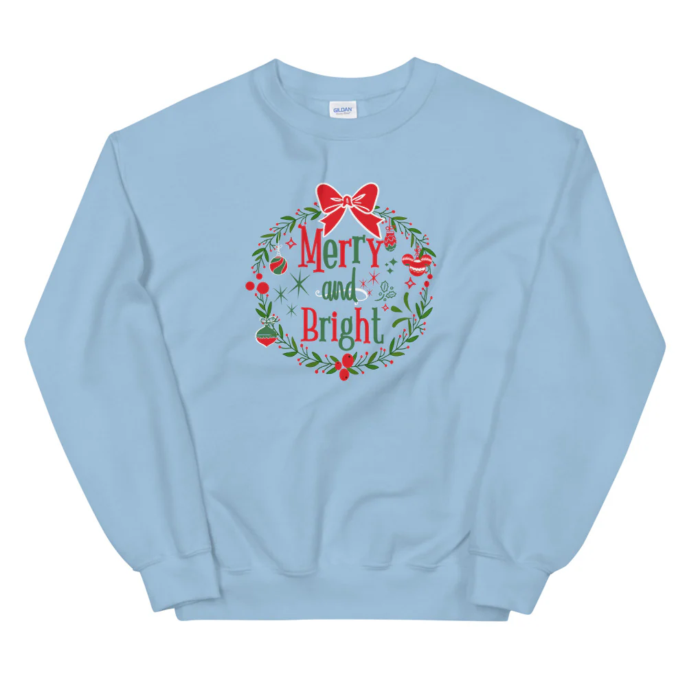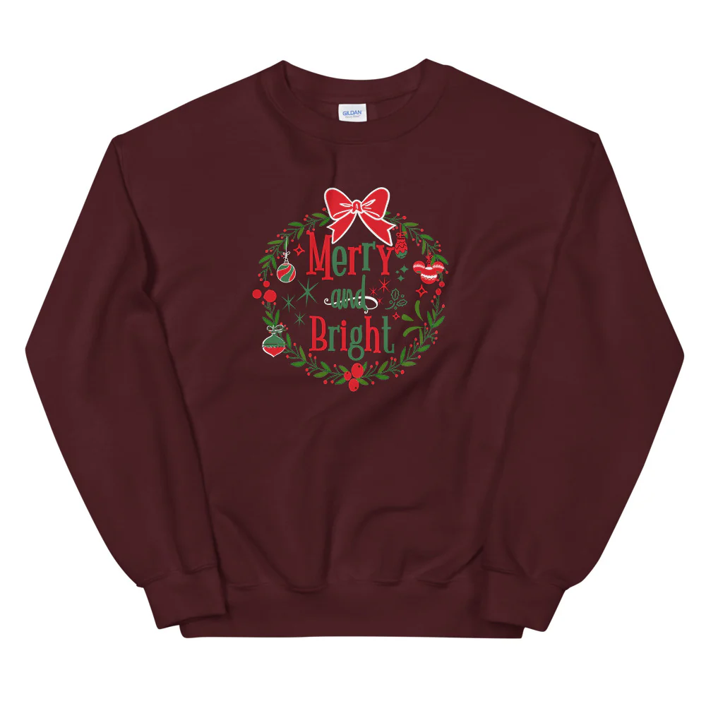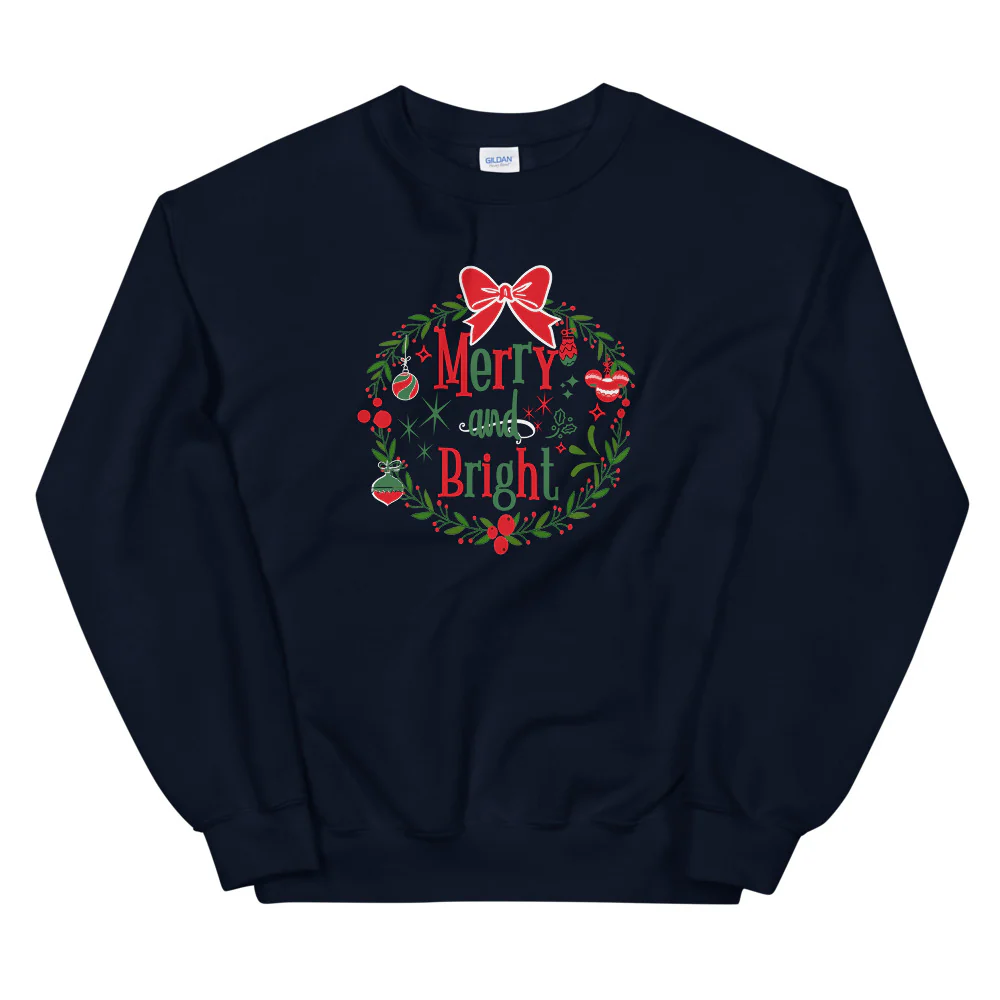 Merry and Bright Sweatshirt Disney Christmas Mickey Wreath Unisex Sweatshirt