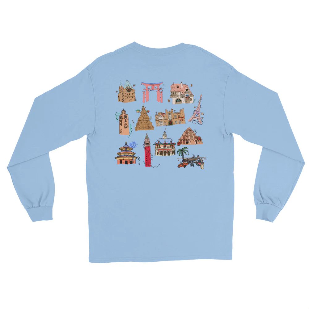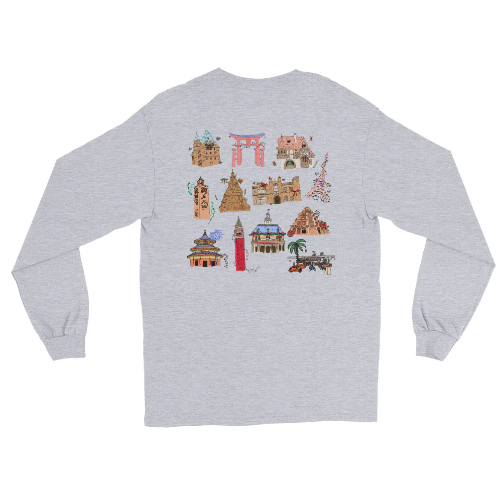 Epcot Holiday Long Sleeve Joy to the World Showcase Christmas Men__ Long Sleeve Shirt