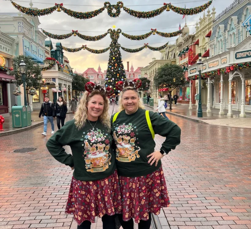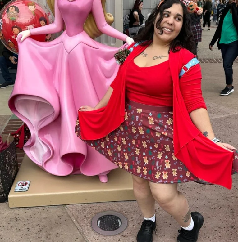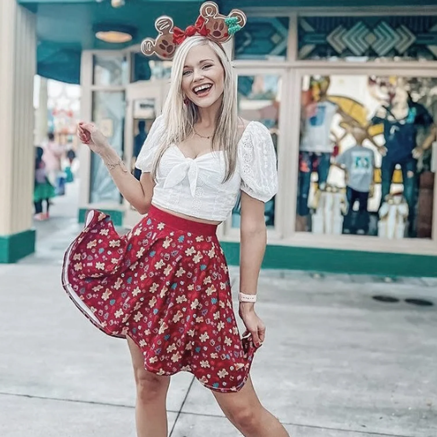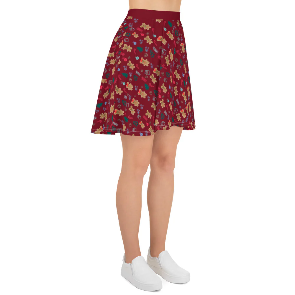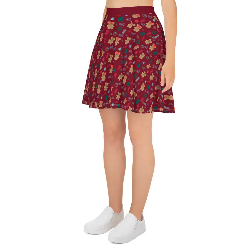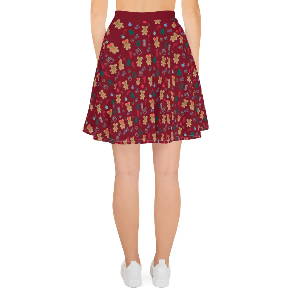 Gingerbread Mickey and Minnie Christmas Skirt Gingerbread Disney Holiday Skirt- Maroon