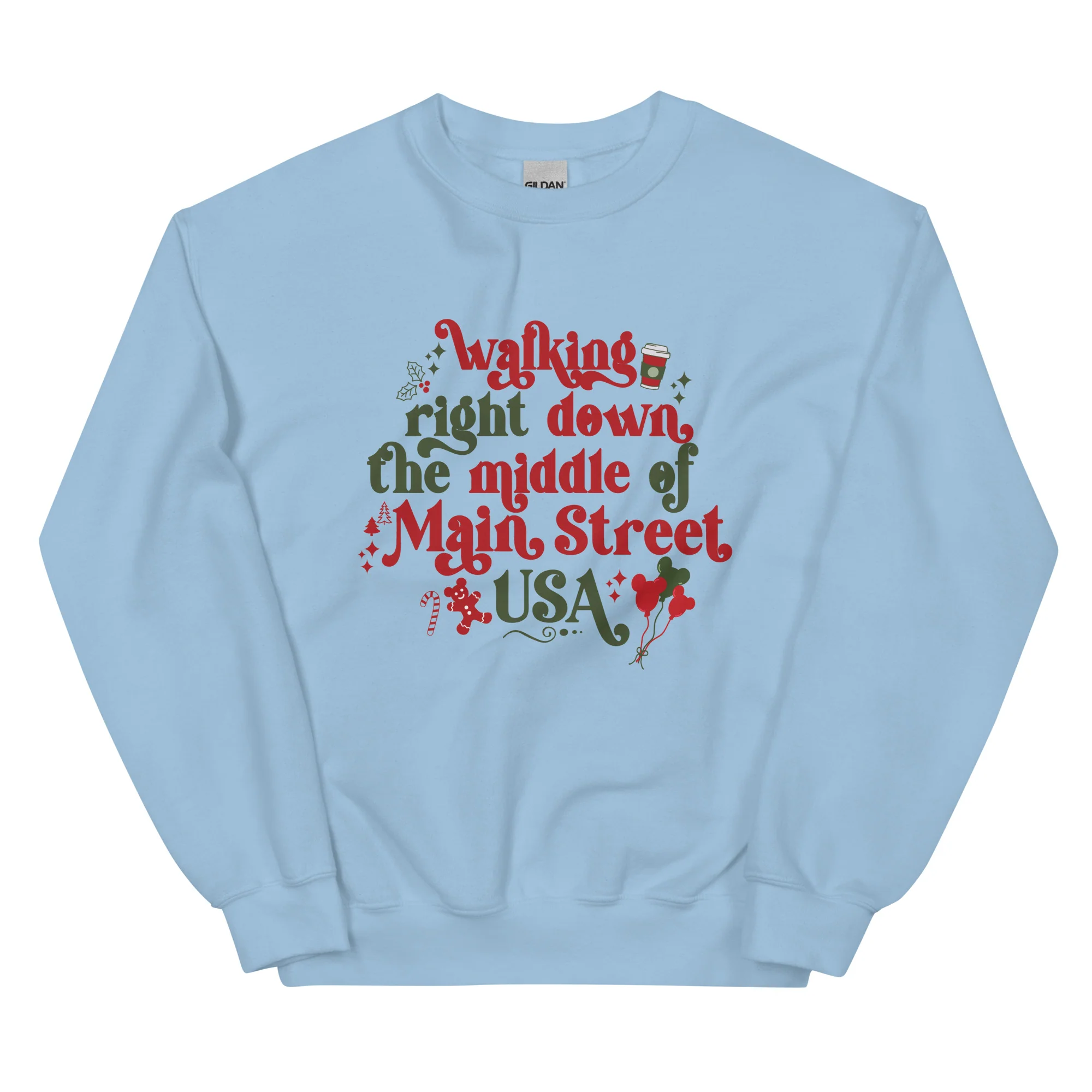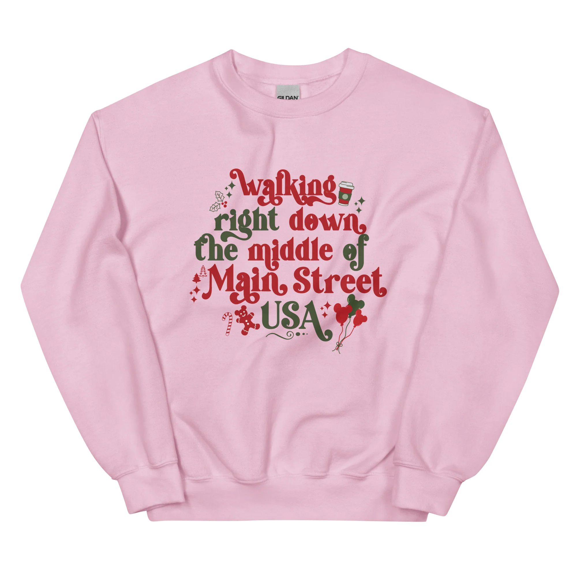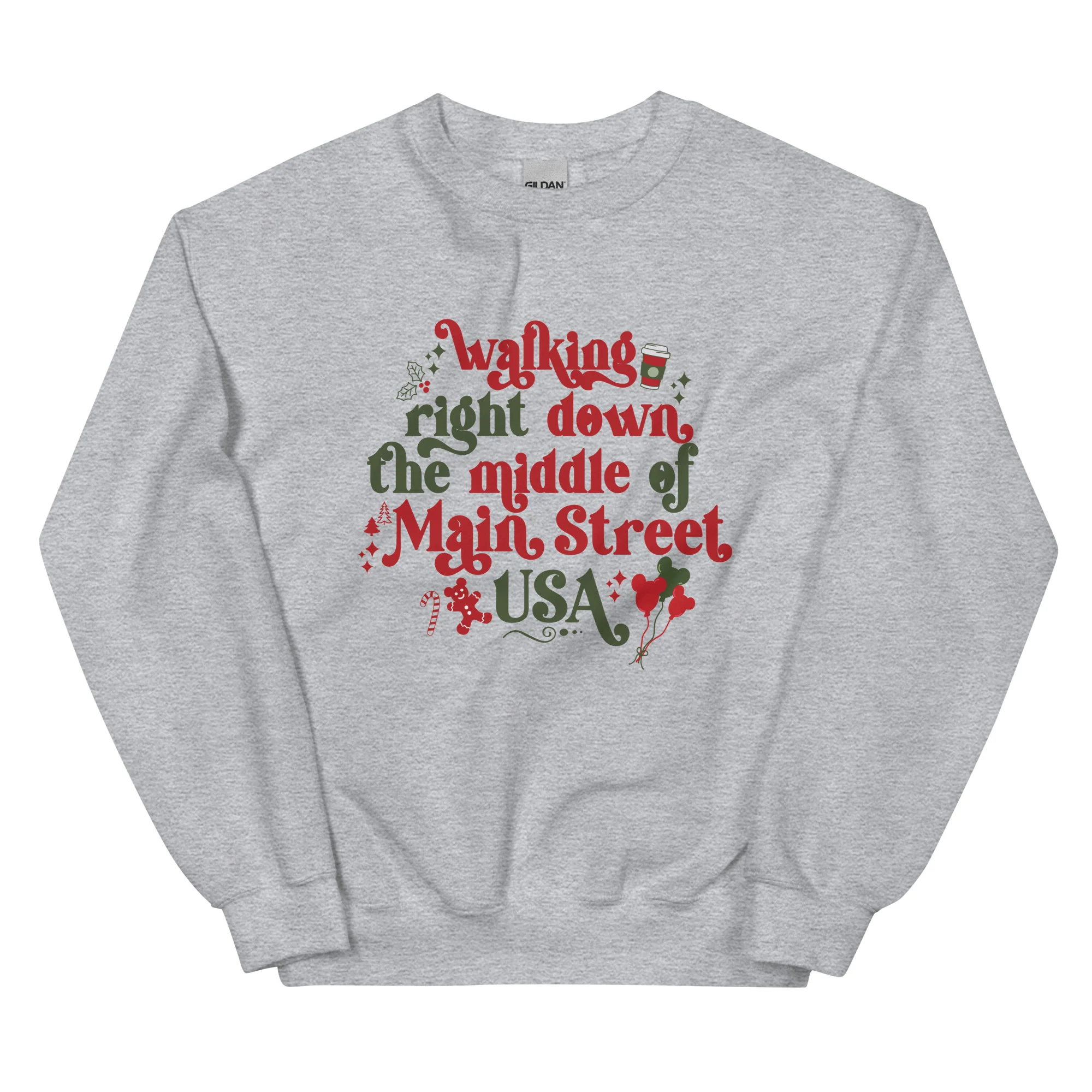 Main Street USA Holiday Disney Sweatshirt Magic Kingdom at Christmas Unisex Sweatshirt