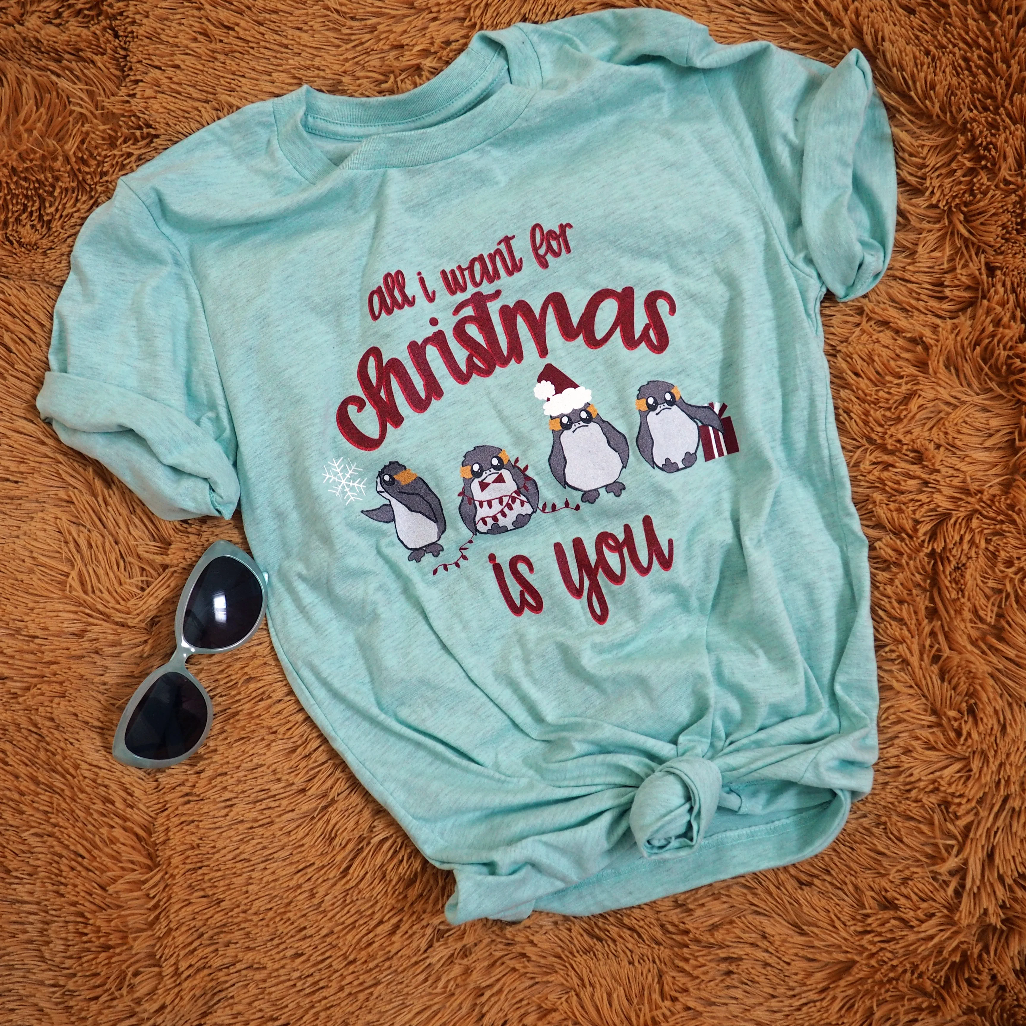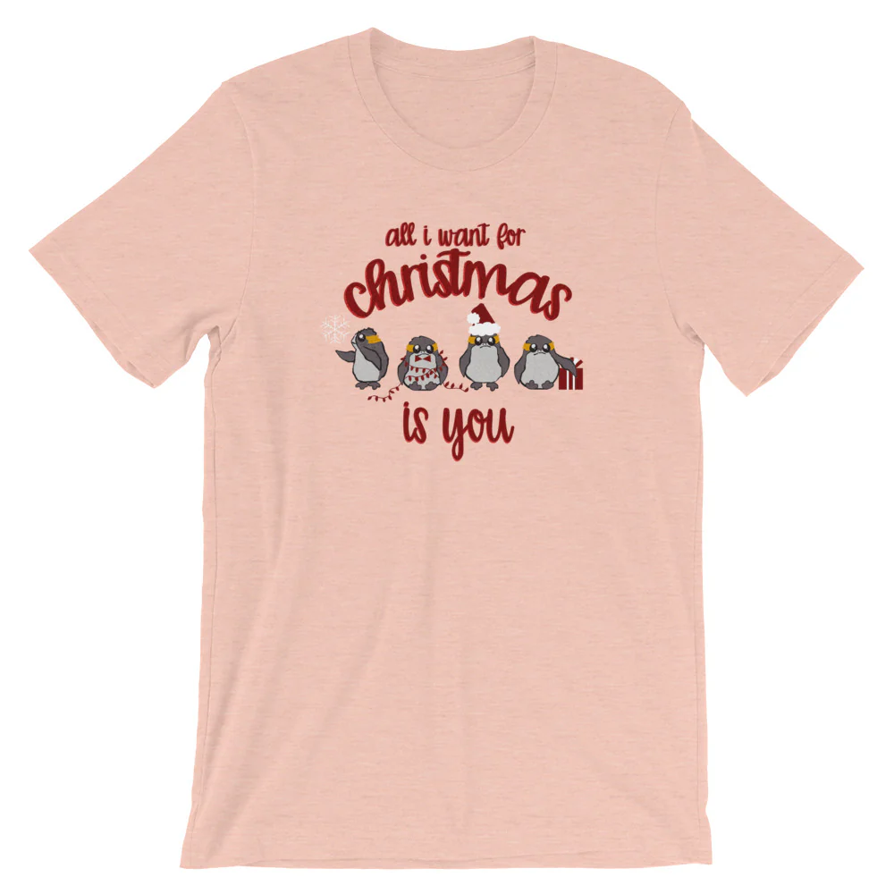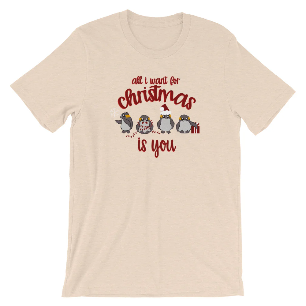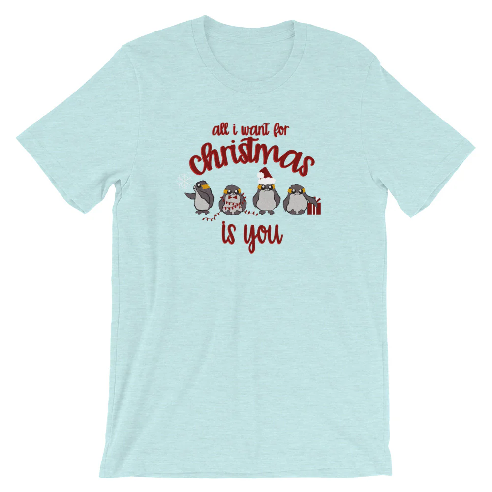 Christmas Star Wars Porg Unisex T-Shirt, All I want for Christmas is You. Disney Inspired Tee