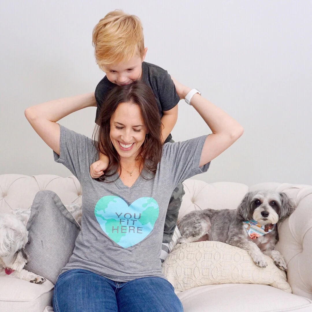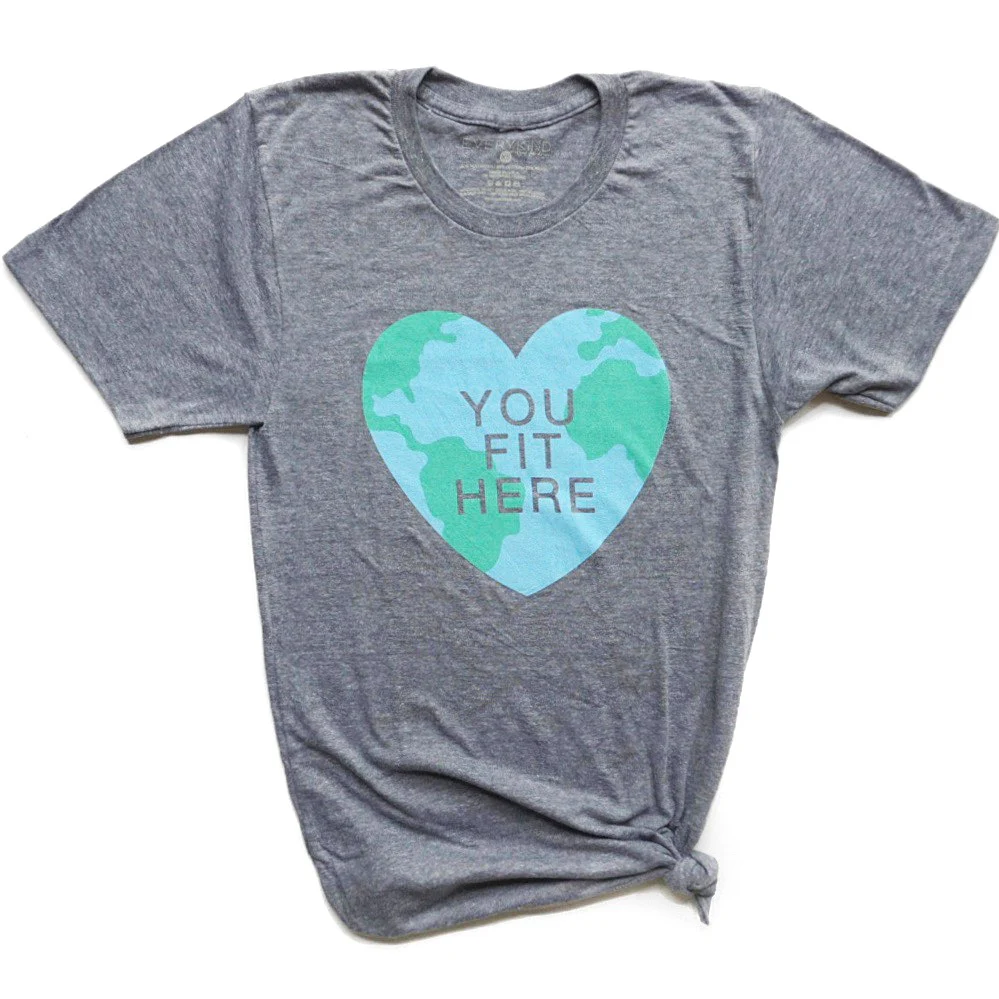 YOU FIT HERE GLOBE/HEART ADULT T-SHIRT